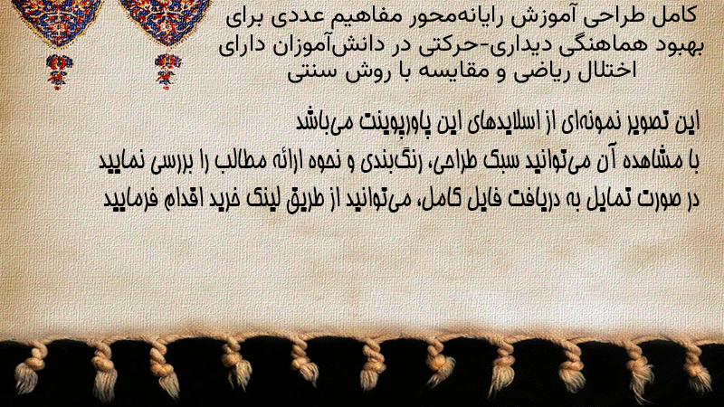 پاورپوینت کامل طراحی آموزش رایانهمحور مفاهیم عددی برای بهبود هماهنگی دیداری-حرکتی در دانشآموزان دارای اختلال ریاضی و مقایسه با روش سنتی