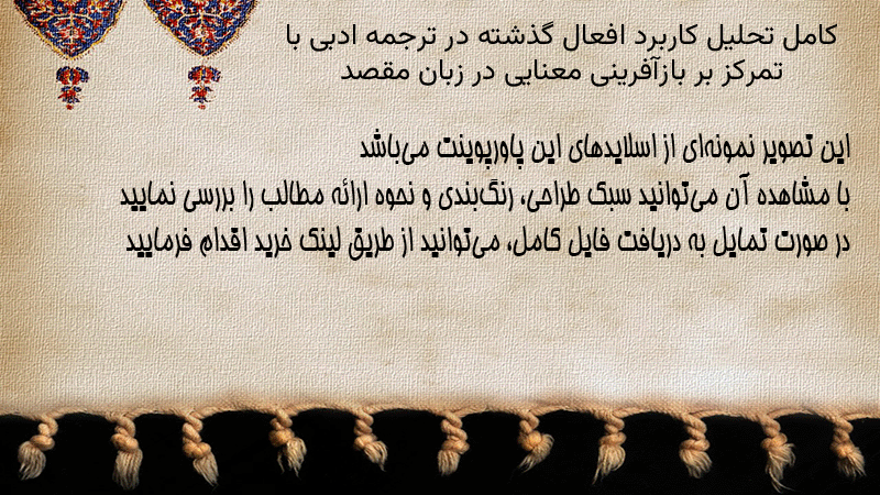 پاورپوینت کامل تحلیل کاربرد افعال گذشته در ترجمه ادبی با تمرکز بر بازآفرینی معنایی در زبان مقصد