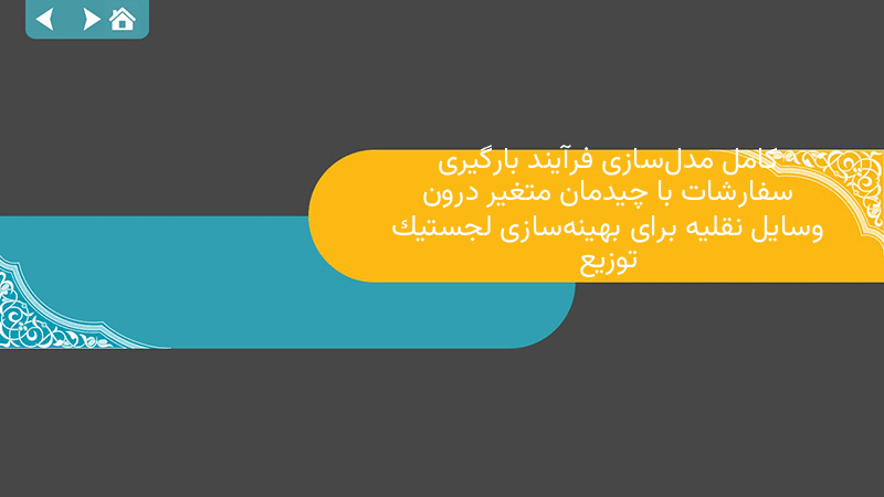 پاورپوینت کامل مدلسازی فرآیند بارگیری سفارشات با چیدمان متغیر درون وسایل نقلیه برای بهینهسازی لجستیک توزیع