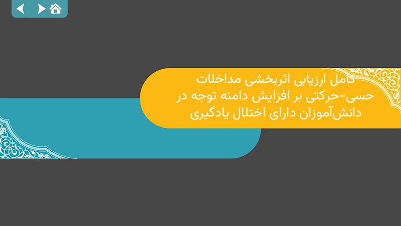 پاورپوینت کامل ارزیابی اثربخشی مداخلات حسی-حرکتی بر افزایش دامنه توجه در دانشآموزان دارای اختلال یادگیری