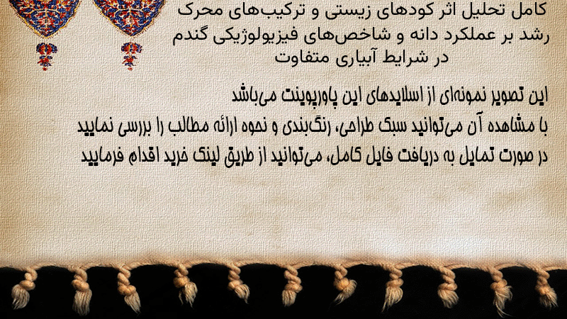 پاورپوینت کامل تحلیل اثر کودهای زیستی و ترکیبهای محرک رشد بر عملکرد دانه و شاخصهای فیزیولوژیکی گندم در شرایط آبیاری متفاوت