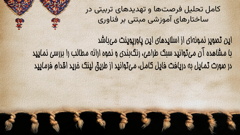 پاورپوینت کامل تحلیل فرصتها و تهدیدهای تربیتی در ساختارهای آموزشی مبتنی بر فناوری