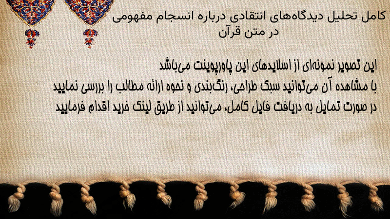 پاورپوینت کامل تحلیل دیدگاههای انتقادی درباره انسجام مفهومی در متن قرآن