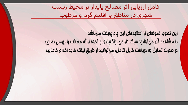 پاورپوینت کامل ارزیابی اثر مصالح پایدار بر محیط زیست شهری در مناطق با اقلیم گرم و مرطوب