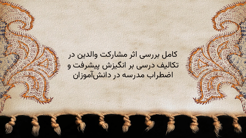 پاورپوینت کامل بررسی اثر مشارکت والدین در تکالیف درسی بر انگیزش پیشرفت و اضطراب مدرسه در دانشآموزان