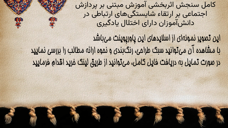 پاورپوینت کامل سنجش اثربخشی آموزش مبتنی بر پردازش اجتماعی بر ارتقاء شایستگیهای ارتباطی در دانشآموزان دارای اختلال یادگیری