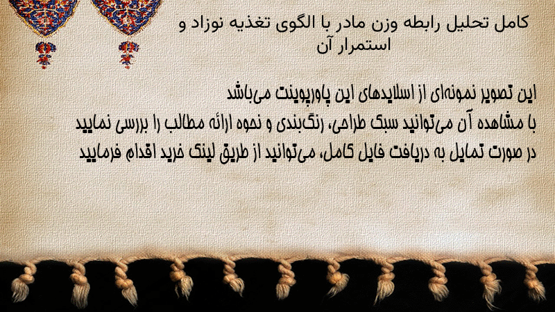 پاورپوینت کامل تحلیل رابطه وزن مادر با الگوی تغذیه نوزاد و استمرار آن