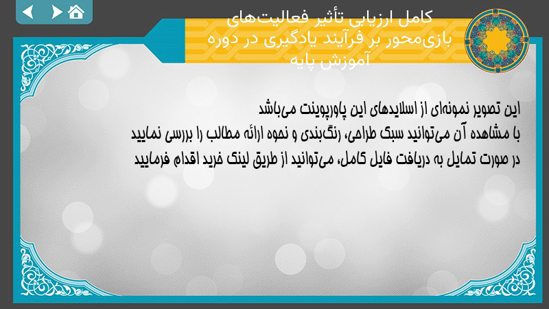 پاورپوینت کامل ارزیابی تأثیر فعالیتهای بازیمحور بر فرآیند یادگیری در دوره آموزش پایه