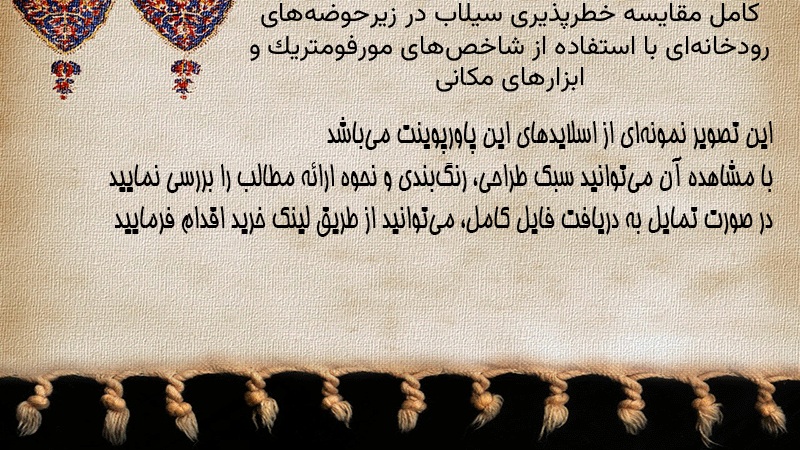 پاورپوینت کامل مقایسه خطرپذیری سیلاب در زیرحوضههای رودخانهای با استفاده از شاخصهای مورفومتریک و ابزارهای مکانی