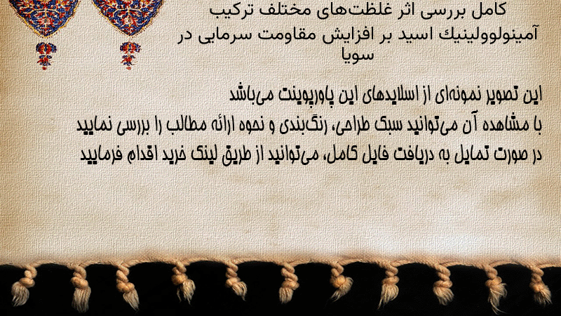 پاورپوینت کامل بررسی اثر غلظتهای مختلف ترکیب آمینولوولینیک اسید بر افزایش مقاومت سرمایی در سویا