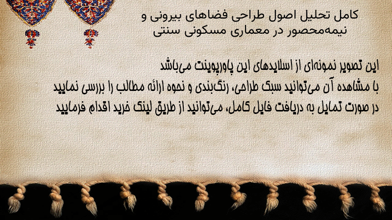 پاورپوینت کامل تحلیل اصول طراحی فضاهای بیرونی و نیمهمحصور در معماری مسکونی سنتی