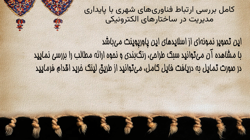پاورپوینت کامل بررسی ارتباط فناوریهای شهری با پایداری مدیریت در ساختارهای الکترونیکی