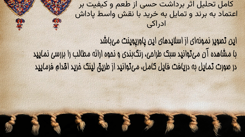 پاورپوینت کامل تحلیل اثر برداشت حسی از طعم و کیفیت بر اعتماد به برند و تمایل به خرید با نقش واسط پاداش ادراکی